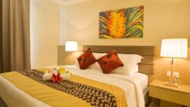تضم الأجنحة المُكيفة الأكبر حجمًا منطقة جلوس منفصلة مع أريكة وتلفزيون بشاشة مسطحة وغلاية كهربائية وخزينة شخصية ومرافق كي الملابس. ويشتمل الحمام الداخلي على دُش. أجنحة توفر إطلالات على البحر. مرافق الغرفة: إطلالة على البحر, شاشة تليفزيون مسطحة, صندوق أمانات, تكييف, مكتب للعمل, مروحة, دش, مرحاض, حمام, غلاية كهربائية يتوفر الواي فاي مجانًا في جميع الغرف. مساحة الغرفة: 46 م² حجم السرير: 1 سرير مزدوج كبير جدًا, 1 سرير أريكة.
